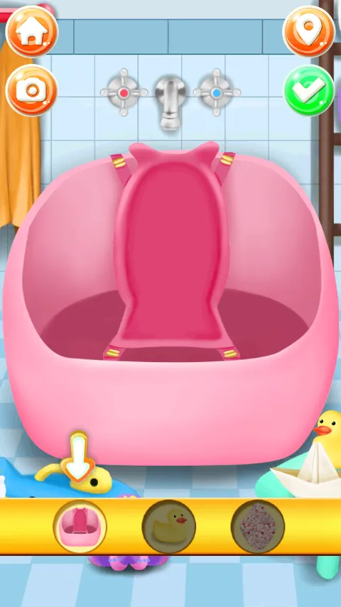 2、随后你就会进入照顾宝宝的任务当中,首先要做的是点击第一个关卡帮宝宝洗澡。