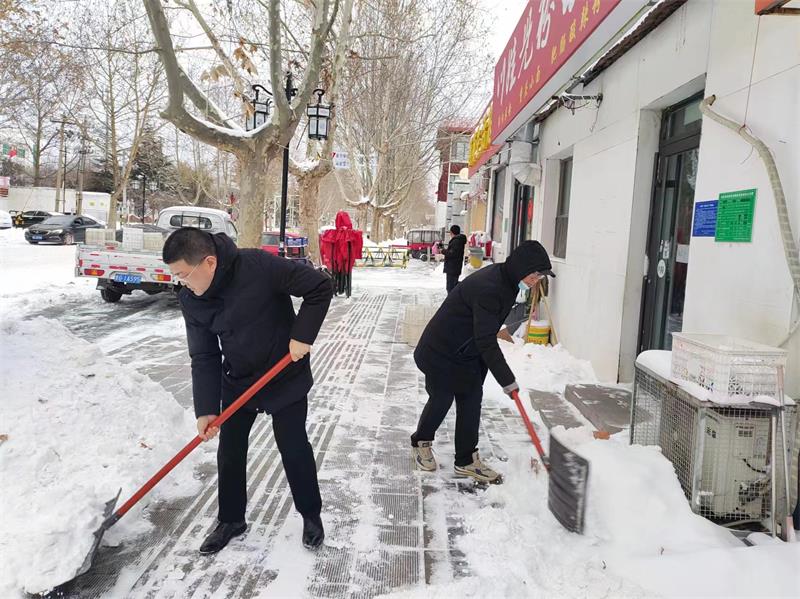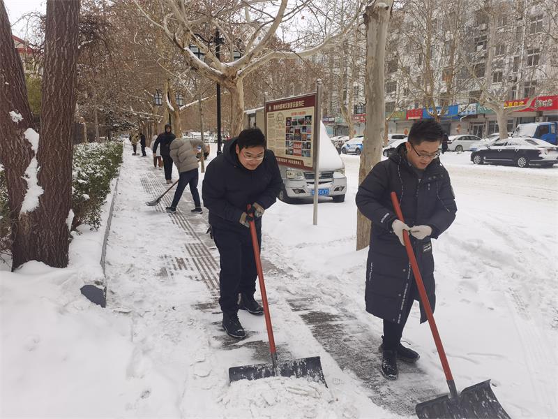 公司以雪为令迅速行动,领导干部和党员带头,公司广大干部职工不畏严寒,分工有序,顶风冒雪在包靠区域内进行多次清除道路积雪和结冰,做到雪停路净,在最短时间内清扫出包靠区域内道路,恢复了安全有序的道路环境,为市民安全出行保驾护航。