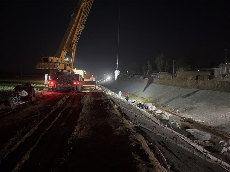 山东省彭楼灌区续建配套与现代化改造工程(2024年度)施工1标为彭楼干渠5.08公里(桩号100+456~105+536)边坡衬砌工程,是聊城市西部大型灌区的关键枢纽,承担着下游莘县、冠县、临清市等地区的防汛安全与农田灌溉重任。面对征地协调、雨季施工、材料供应、环保管控等多重挑战,公司项目部创新采用“分段突击、流水作业”施工方案,优化衬砌板安装工艺,科学调配资源,最终于2025年3月30日提前完成建设,并通过分部与单位工程验收。